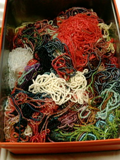 ビーズは糸に通して束になってるけど、他のビーズと絡まっててもうはずすのが大変でした。