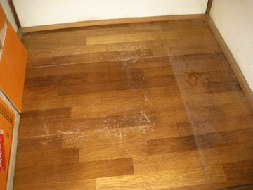 ここもヒドイんだよなぁ・・・。右に浴室入り口。