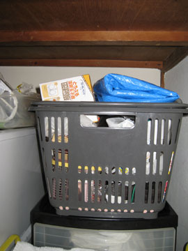 前にタオルカゴを。カゴの一番下は・・・今度ね・・・
