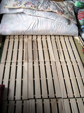 ロールタイプのすのこが欲しかったけど却下されて100均のすのこ15枚敷き。