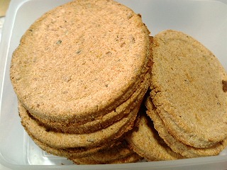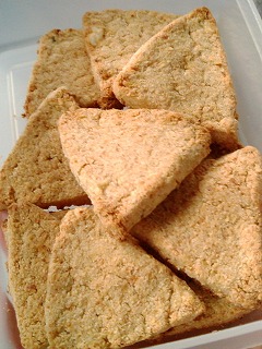 今回は三角形。材料は前回と同じくおからとメープルシロップと小麦粉、バター、塩。