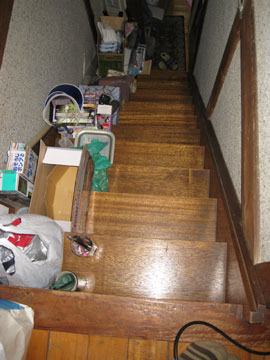さて、今日の汚部屋掃除は階段の拭き掃除。