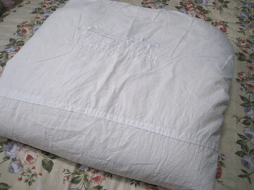 (布団もシーツも真っ白なので何がなんだかわかりませんが布団を入れてる様子)