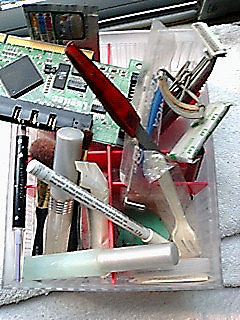 化粧道具いろいろ。何故かスカジーボード。
