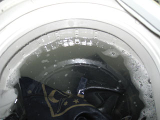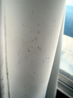 続いて隣の部屋のカビの生えたカーテンも洗濯しました。こっちは真っ黒の水は出なかったです。だけどカビ。
