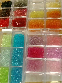 今まで高めのスワロフスキーをよく買ってたけど、趣味で作るだけだしアクリルビーズでも充分かな。